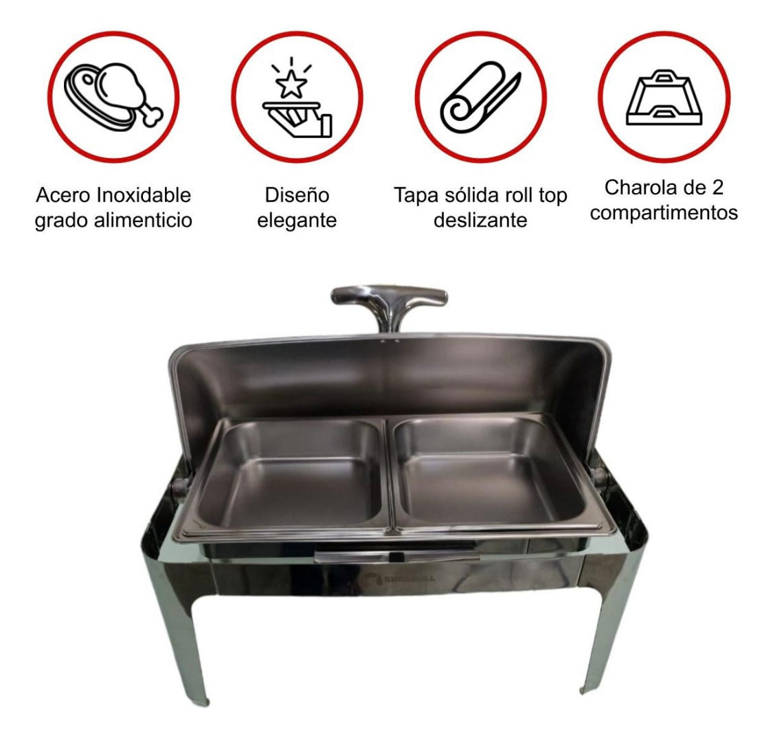 El Chafer hotelero de acero inoxidable es la opción ideal para mantener tus platillos calientes con estilo en eventos, buffets o reuniones especiales. 🌟